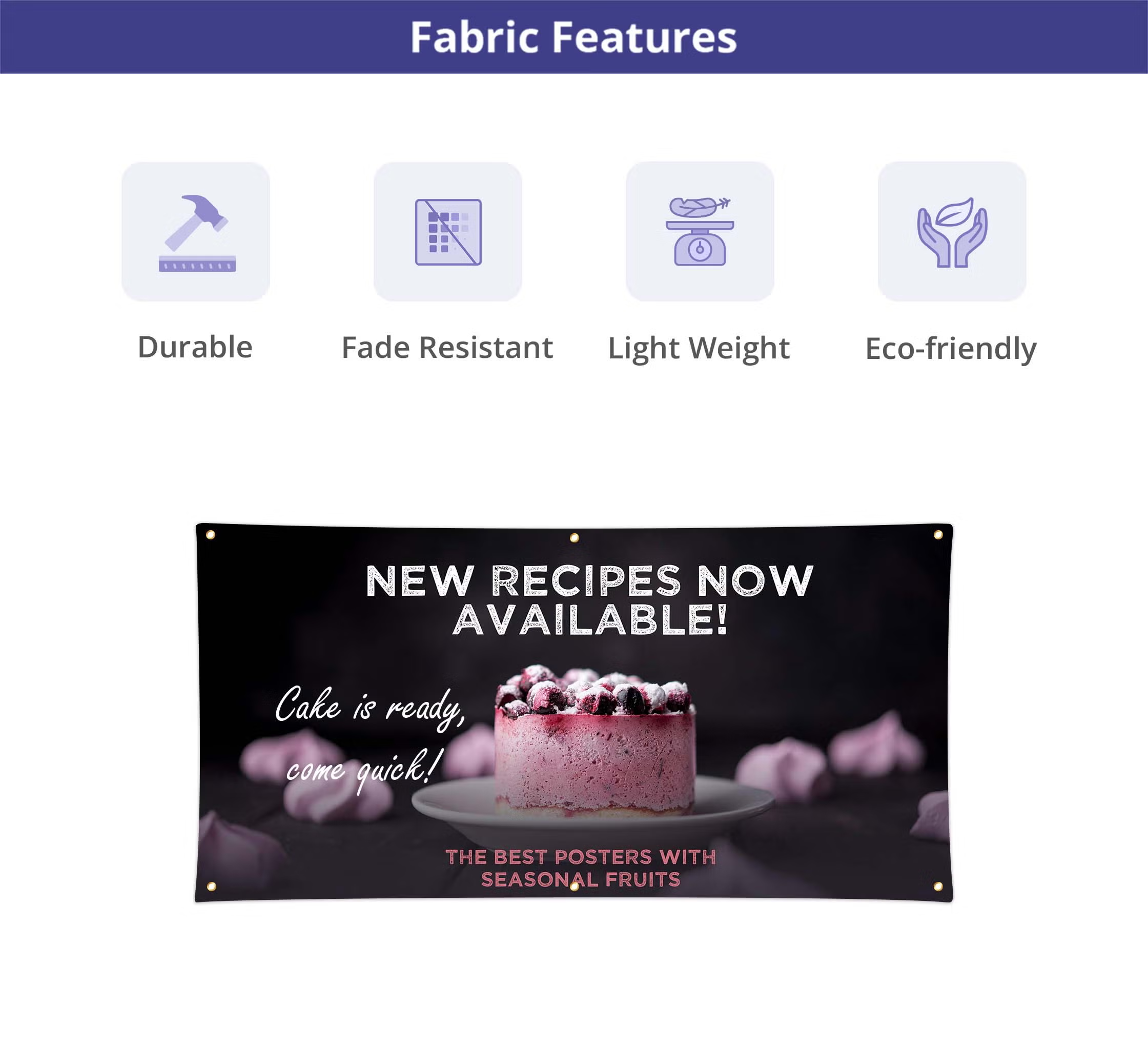 Our high-quality indoor banners are crafted from premium quality PVC flex, which offers exceptional durability and weather resistance. Choose from a standard 13 oz graphic weight or upgrade to 16 oz for enhanced durability and UV resistance. For single-sided banners, the graphic front is white and the back is gray, ensuring a professional appearance from any angle. Our advanced printing options include full-color, 720 DPI eco-solvent printing or 600 DPI UV printing, ensuring vibrant and long-lasting visuals.