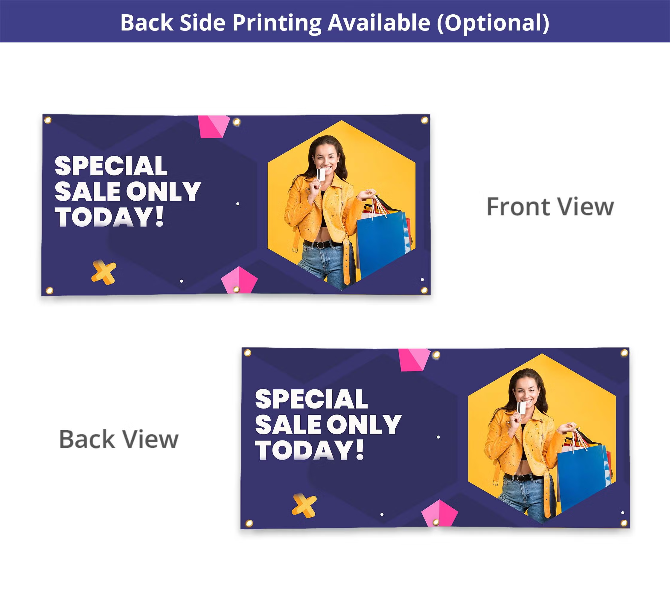 Uplift your promotional efforts with our affordable indoor banners. Order today for hassle-free door-to-door delivery and see your brand visibility soar, whether it's for a store sale, grand opening, or trade show display.