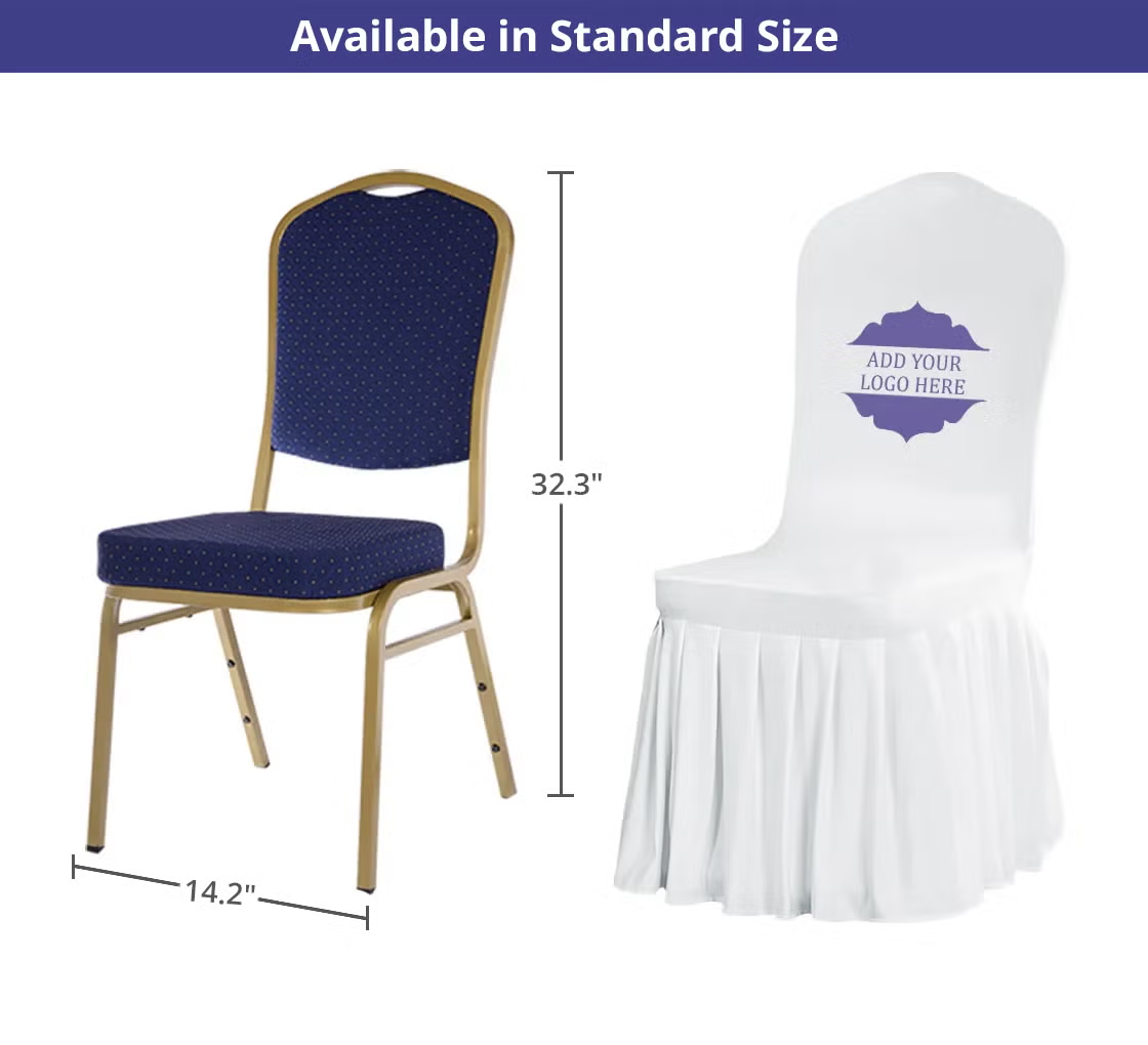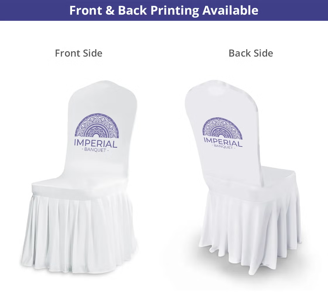 Unlock a premium look at an affordable price. Choose our custom chair covers and transform your event space into a stunning, brand-centric environment today.