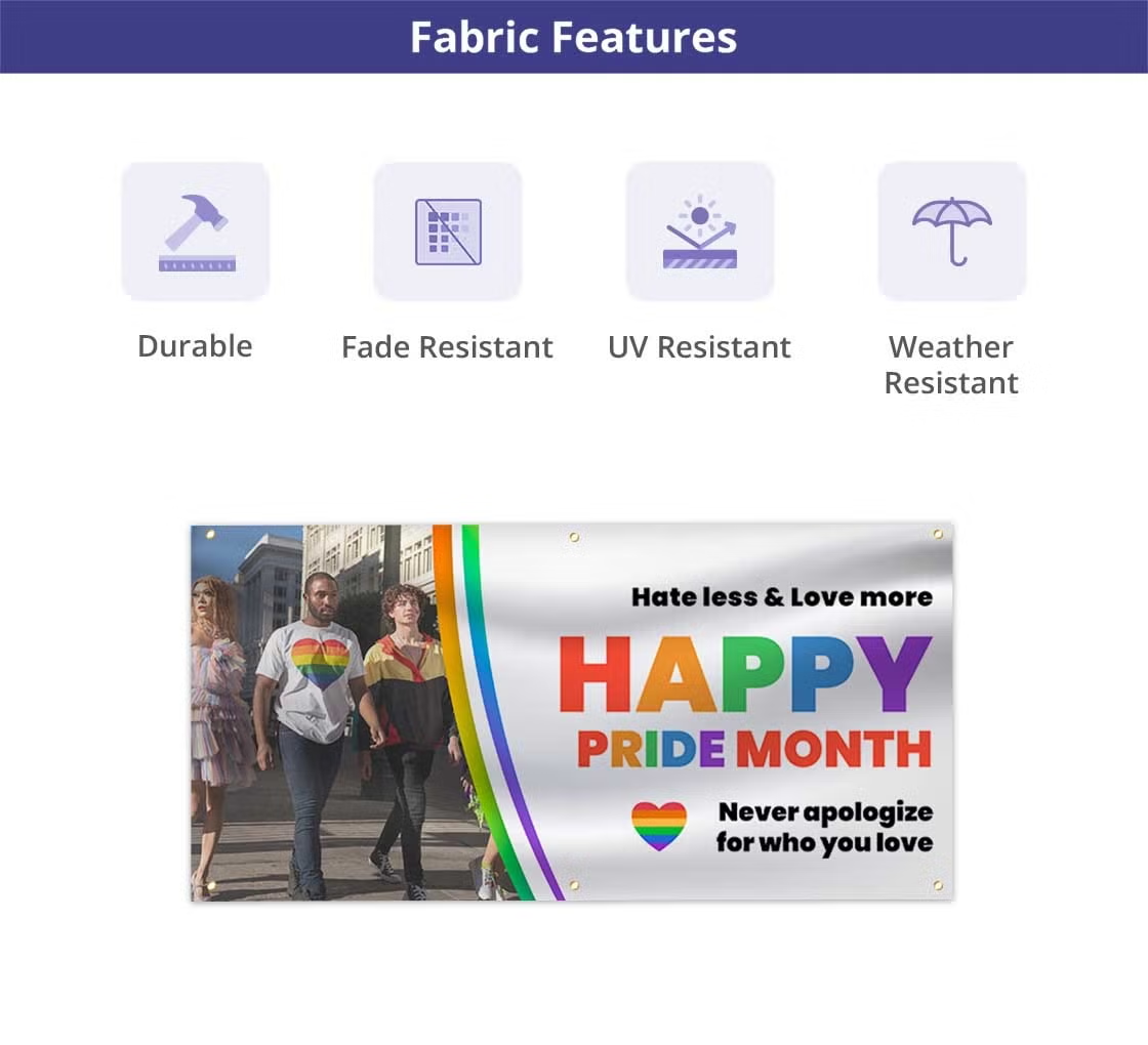 Maintaining your custom pride banner is straightforward, simply wipe it with a soft, damp cloth, no cleaning solution needed. Take advantage of our discounts on bulk orders, making these banners an affordable yet premium choice for widespread promotion. Fast shipping guarantees your banners arrive in time for your events.