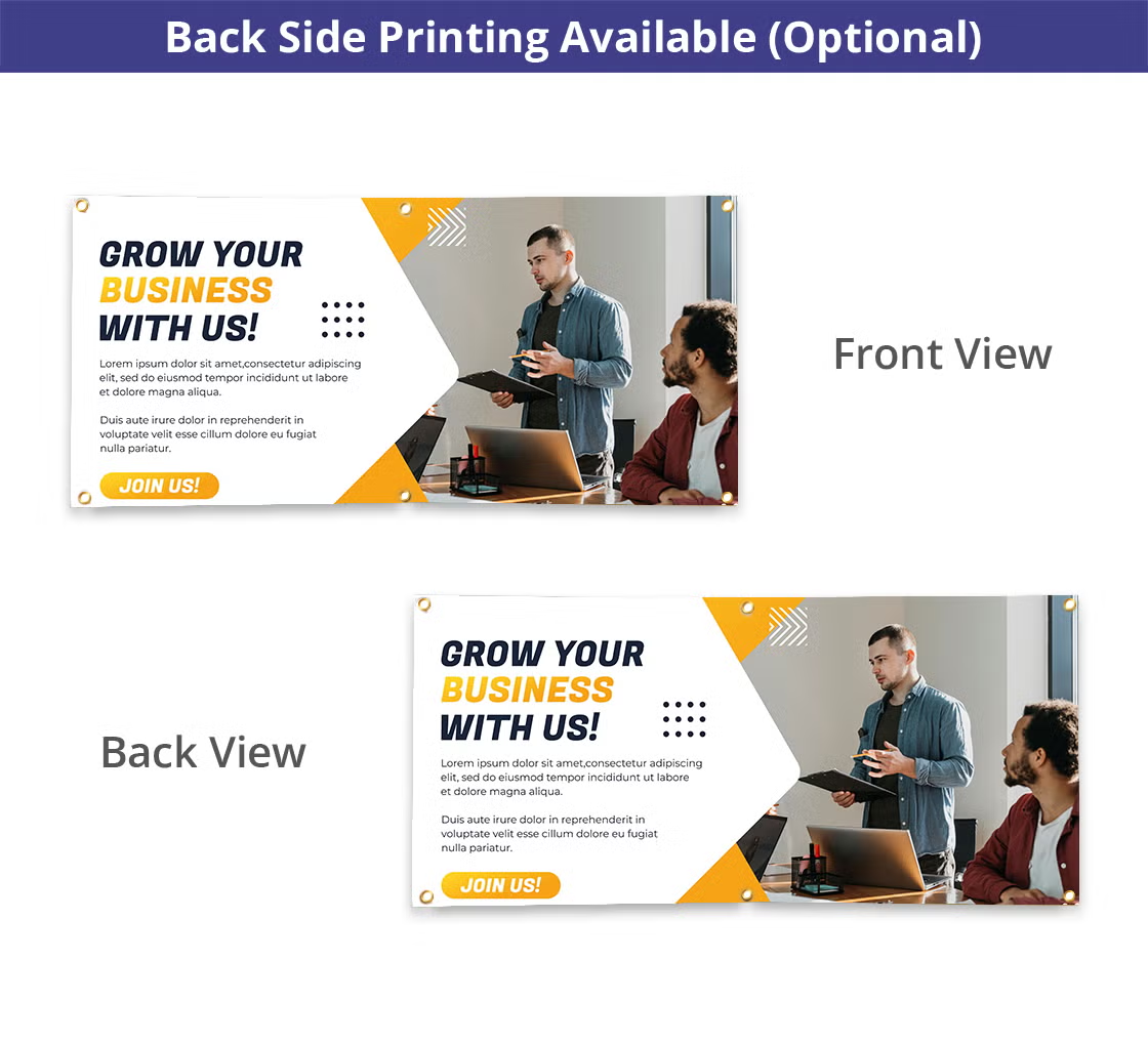 Our trade show display banners are available in standard or custom sizes to perfectly match your space requirements and promotional objectives. We offer a range of customization options to fit your specific marketing needs perfectly. Opt for either single-sided or double-sided printing to maximize visibility. Enhance durability and visual quality with lamination, and consider adding wind flaps to withstand breezy conditions. Utilize our pre-designed templates, upload your artwork, or collaborate with our designers for a unique look. For hanging, choose from several options: no grommets, ultra-strong adhesive tabs, brass grommets, or pole pockets for versatile and easy installation.